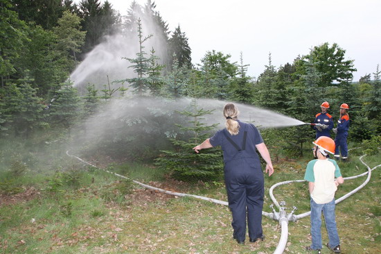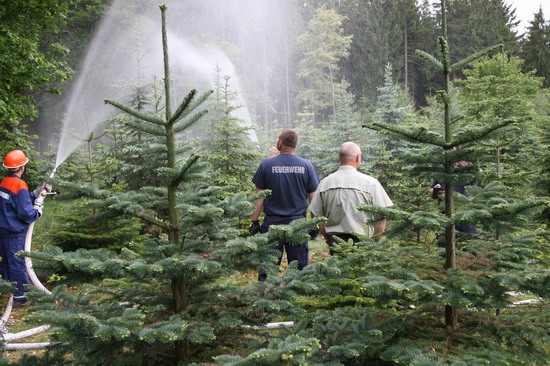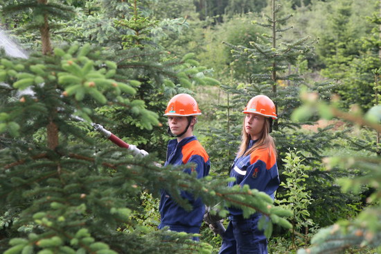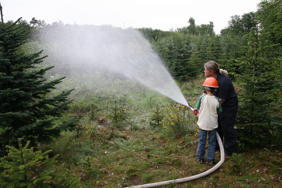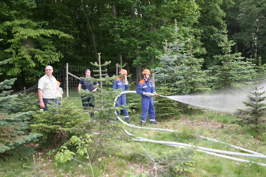Jugendfeuerwehr aus um die neugepflanzten Tannenbäume an den 12