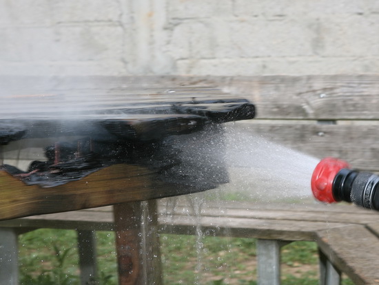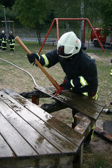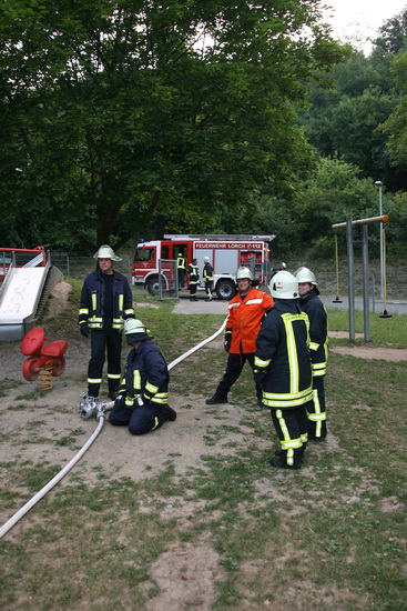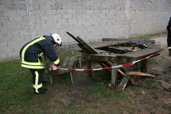 Auf dem Spielplatz am Ranselberg brannte ein Tisch. Feuer mit einem C Rohr gelöscht