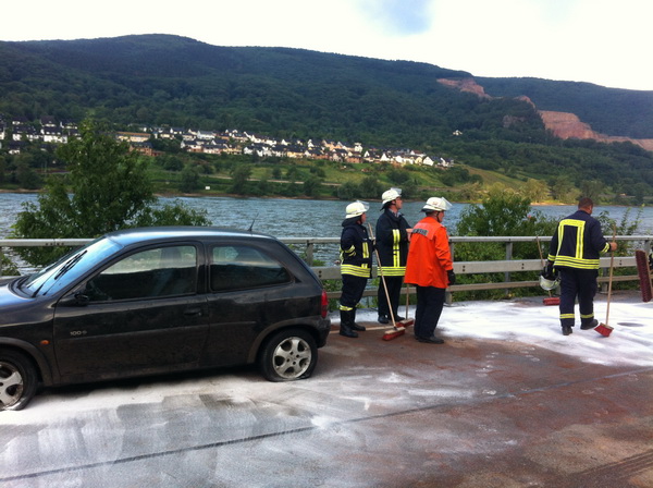 nach einem Verkehrsunfall auf der B42 alarmiert. An der