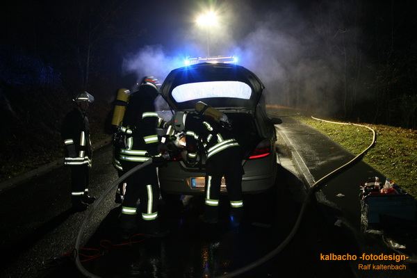 PKW Brand Die Feuerwehr Lorch wurde heute Abend zu einem PKW Brand an der