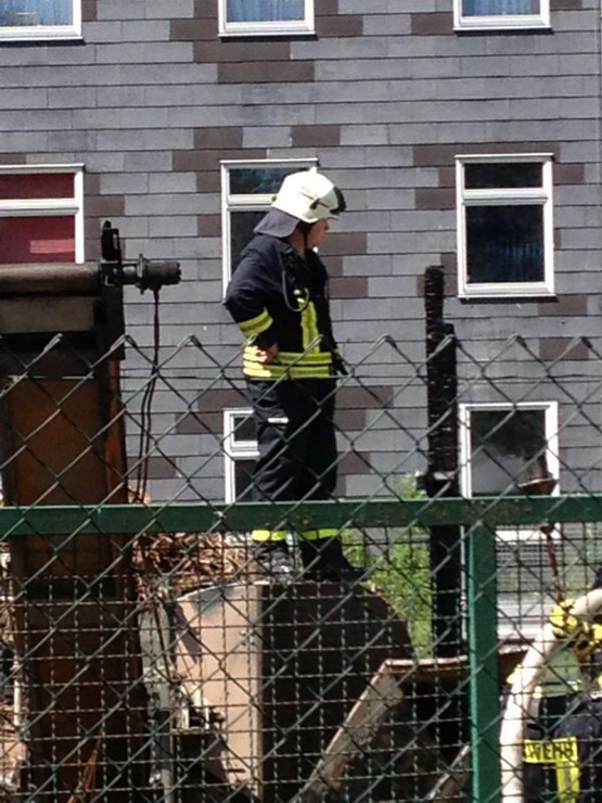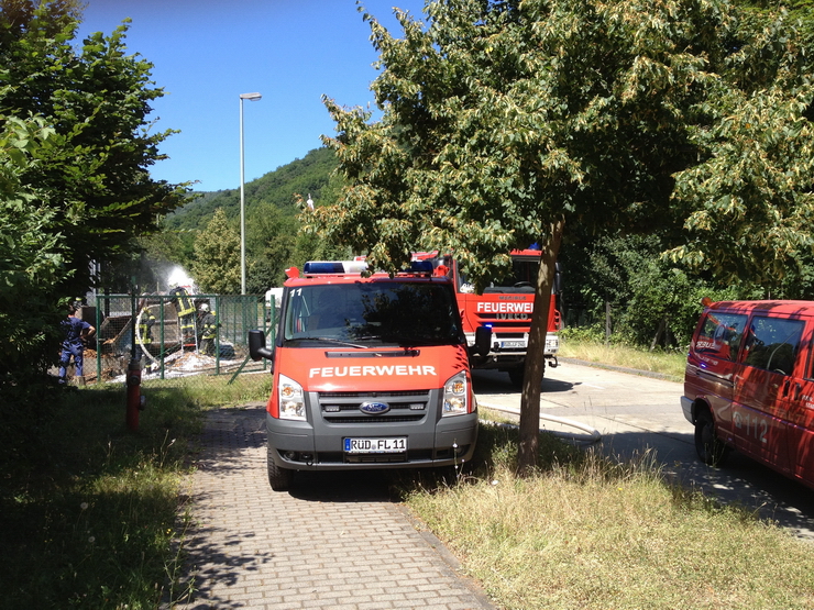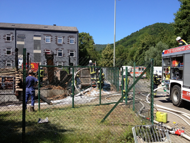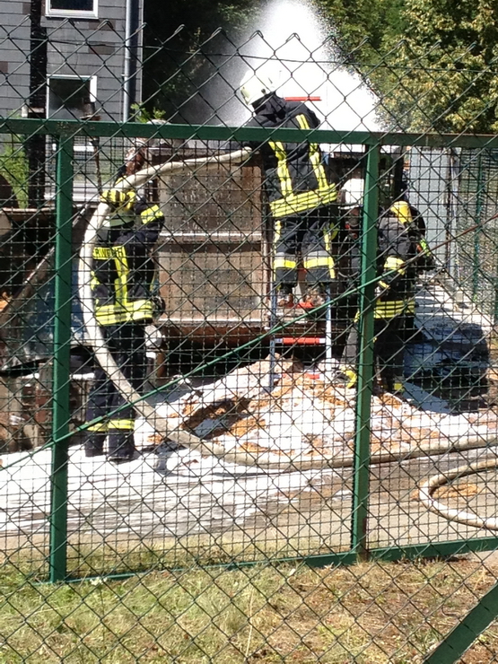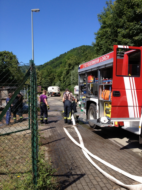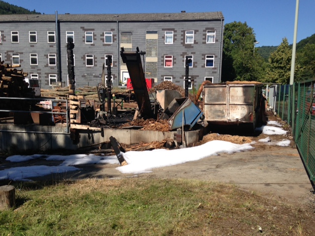 (HZ) Die Feuerwehr Lorch und der Rettungswagen wurden erneut in den Gewerbepark alarmiert. Der in der Nacht gebrannte Kübel hatte wieder angefangen zu Qualmen. Er wurde ausgeräumt und mit Schaum erneut abgelöscht.