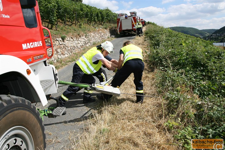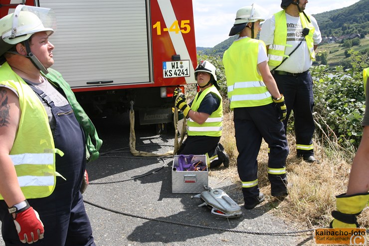 Feldweg kommen. Das Fahrzeug wurde mit zwei Mehrzwegzügen wieder auf