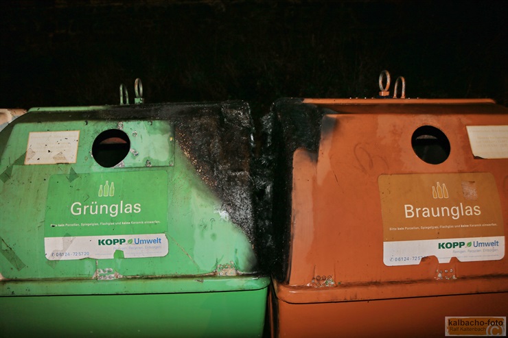wurde zu einem brennendem Glascontainer an der alten B42 alarmiert.