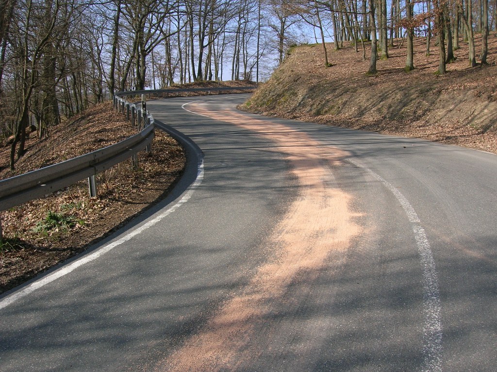mit altem Fritieröl durch unbekannte auf der Fahrbahn verteilt. Das