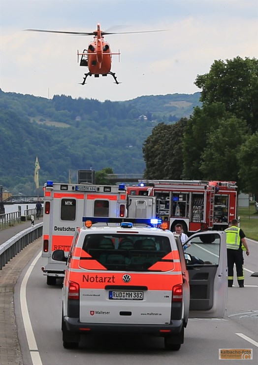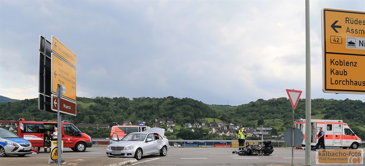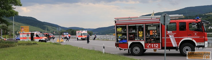 einem schweren Verkehrsunfall auf der B42 alarmiert. An der