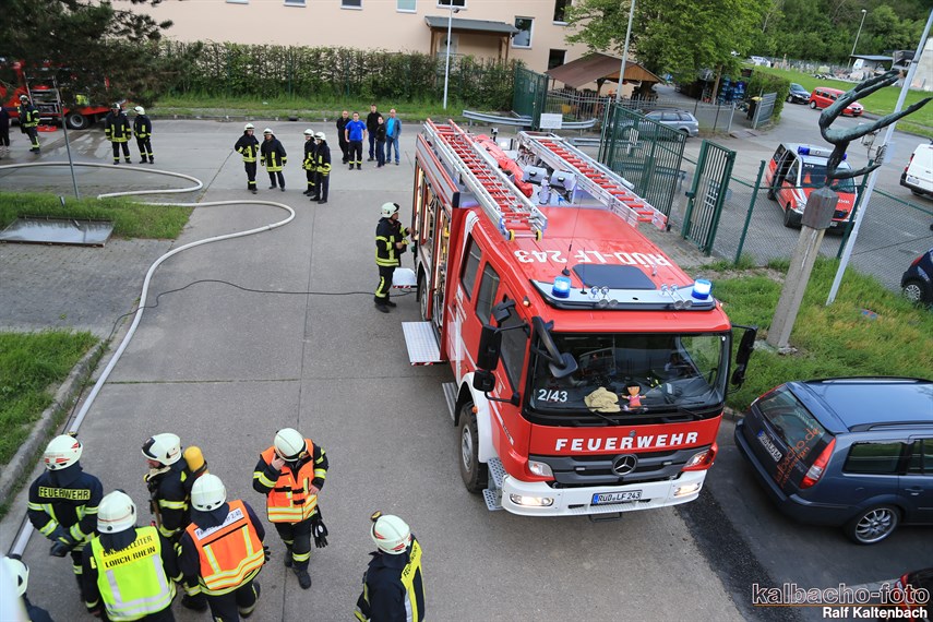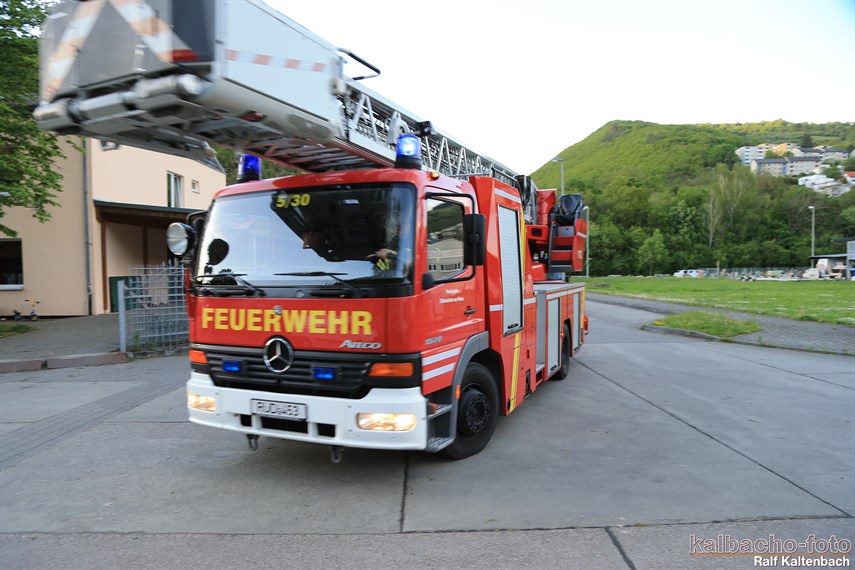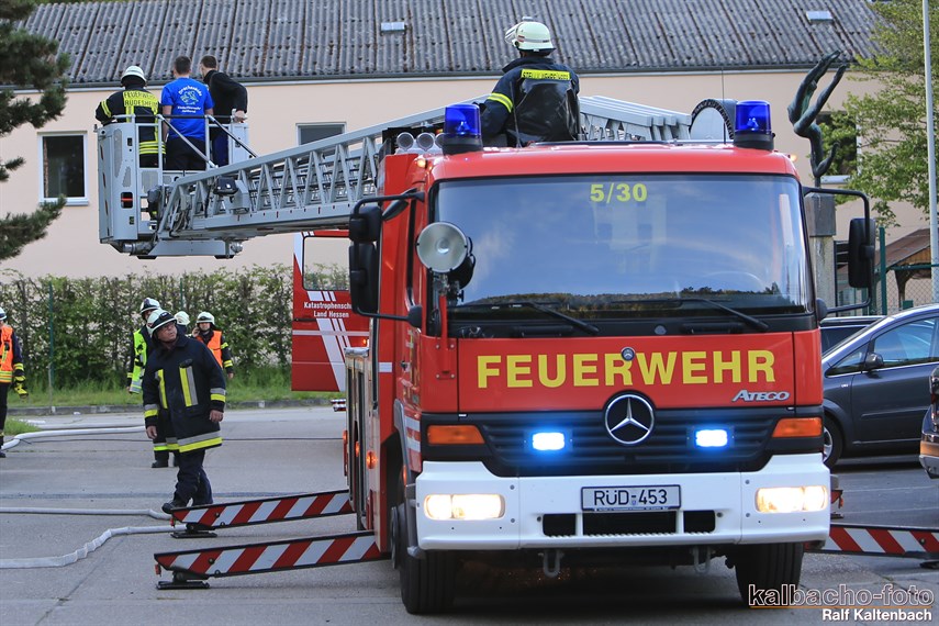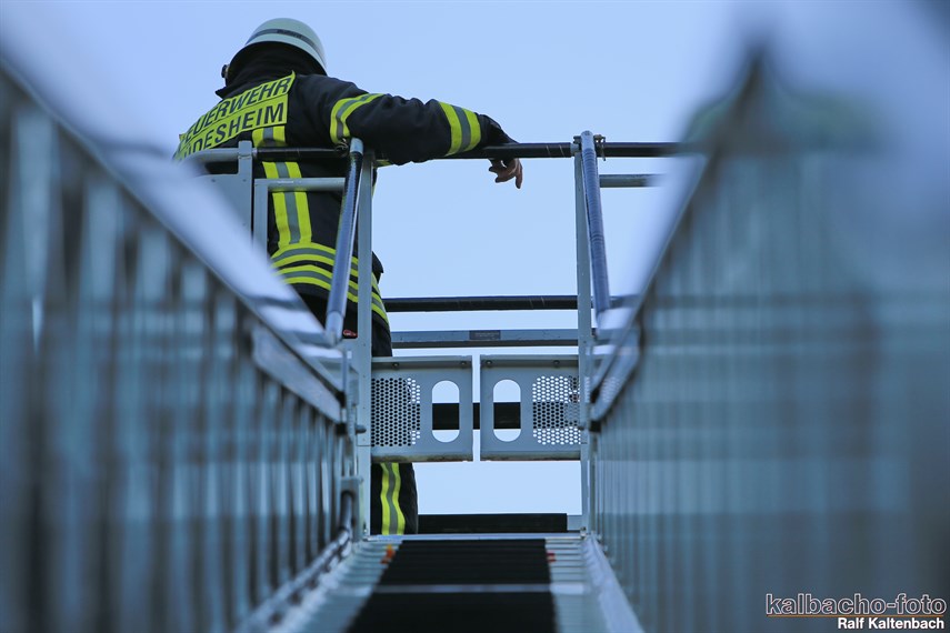 Drehleiter gerettet wurden. Außerdem wurde von drei Trupps unter