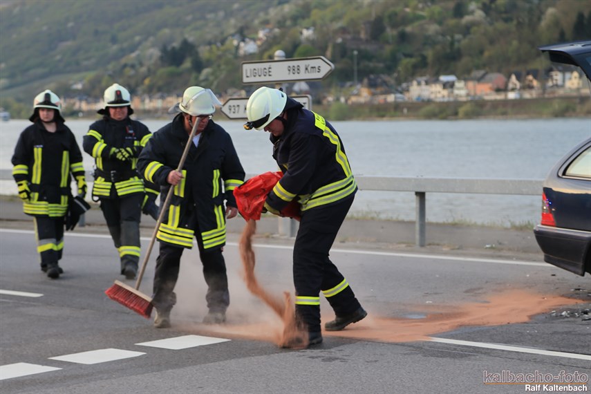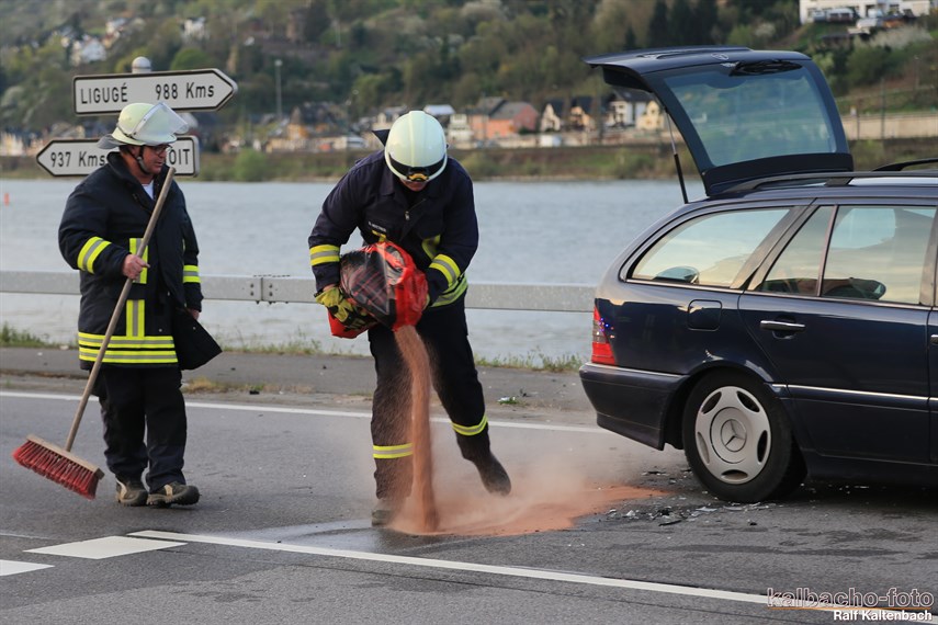 streute die auslaufenden Betriebsstoffe mit Ölbindemittel ab.