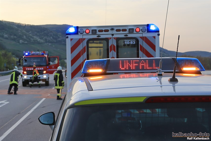 B42 an der Ausfahrt Lorch alarmiert. Der Verursacher und sein