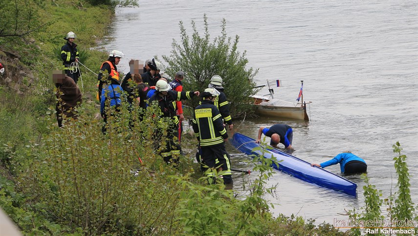 umgestürzten Ruderboot mit 5 Personen im Bereich Assmannshausen