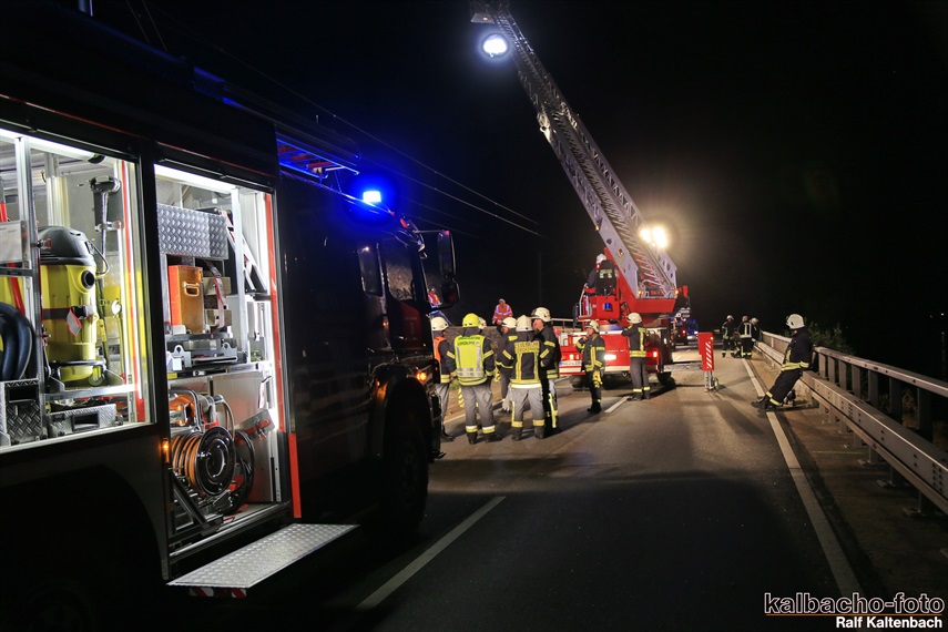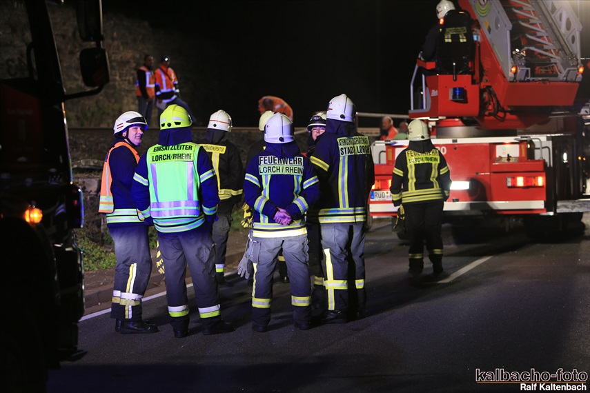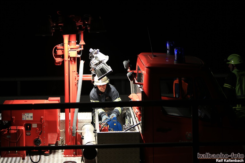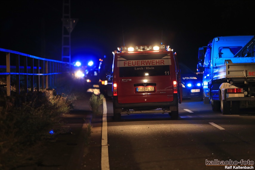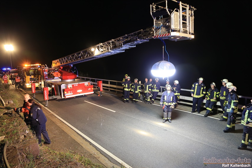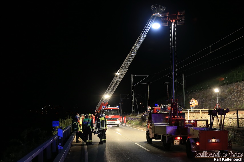 Lichtmastfahrzeug aus Rüdesheim leuchteten die Unfallstelle für