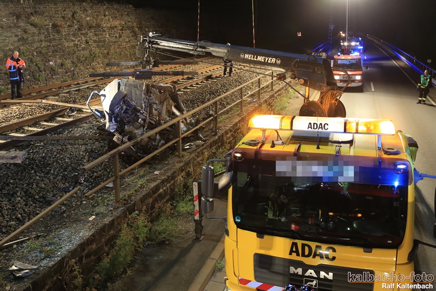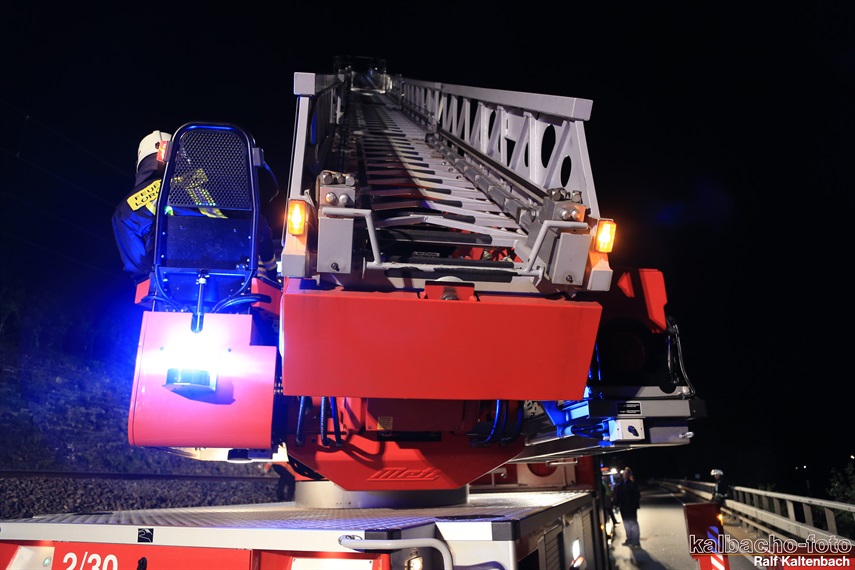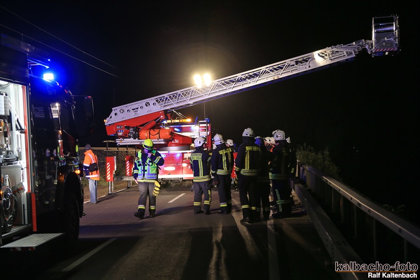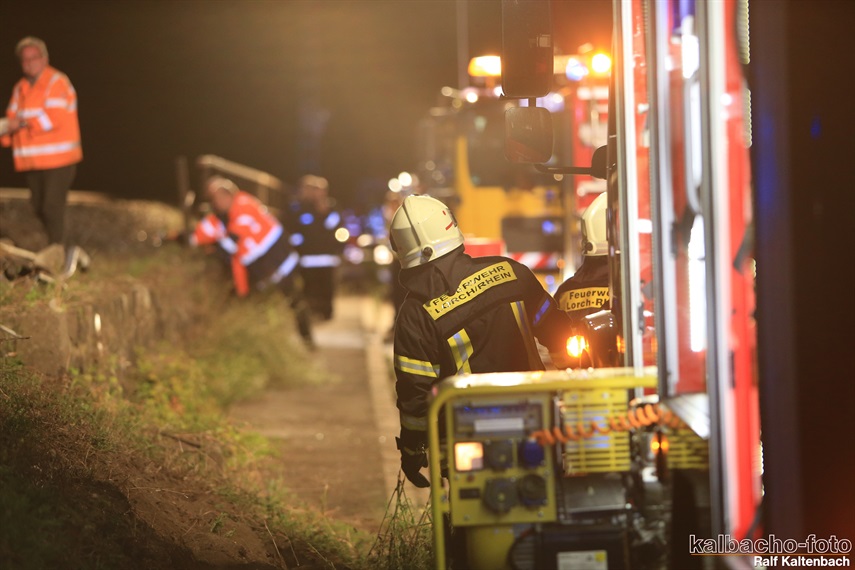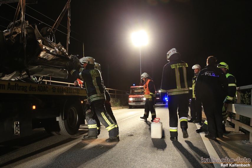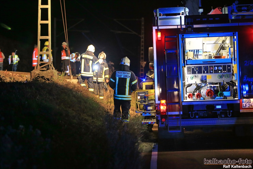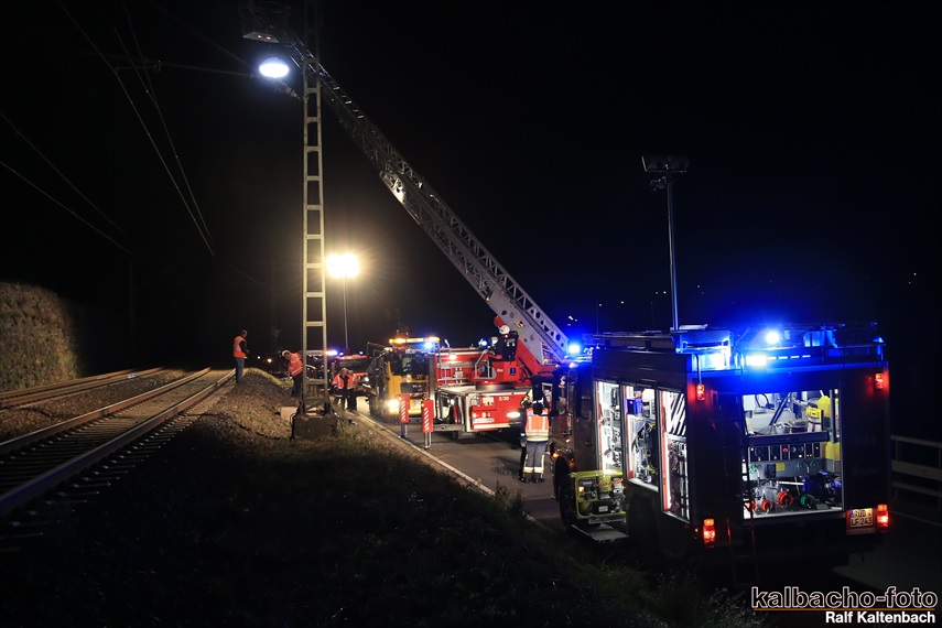 Lichtmastfahrzeug aus Rüdesheim leuchteten die Unfallstelle für
