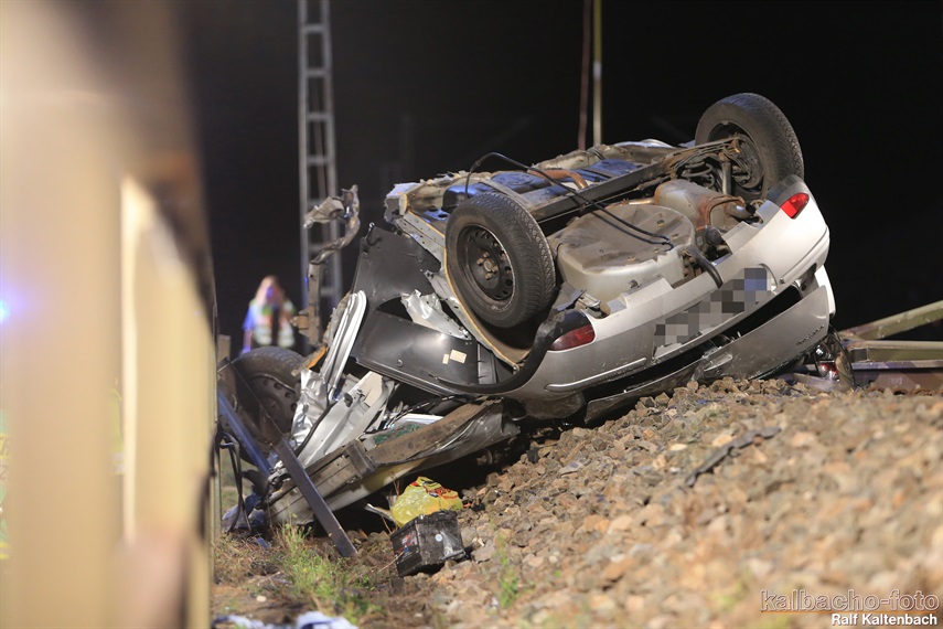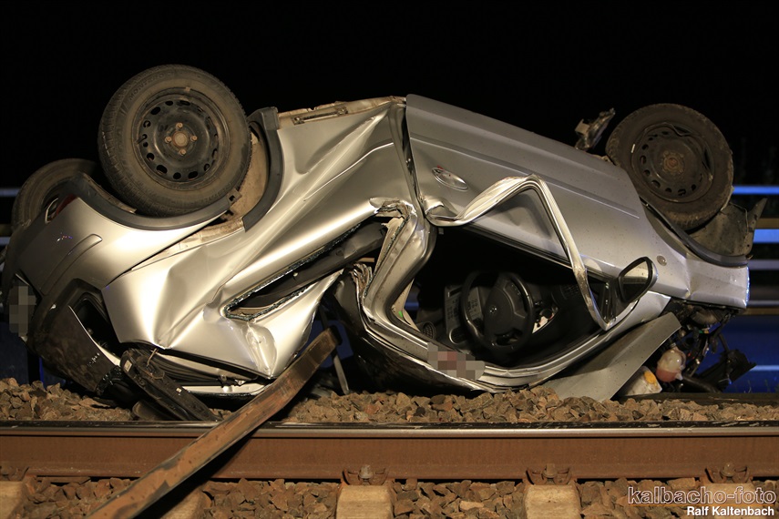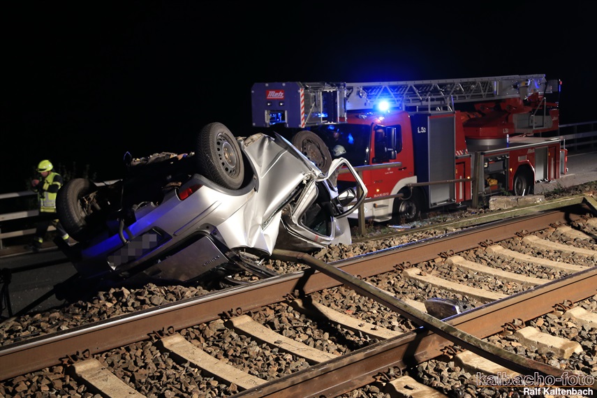 und auf dem Dach liegend auf den Gleisen liegen geblieben. Der