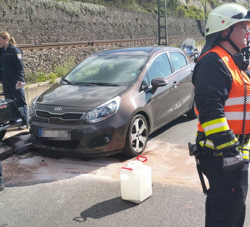 Feuerwehr musste auslaufende Betriebsstoffe abstreuen und die