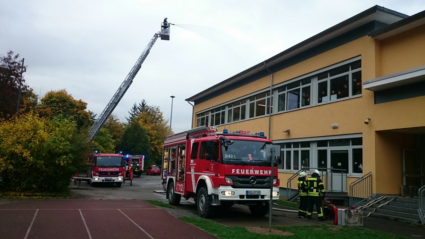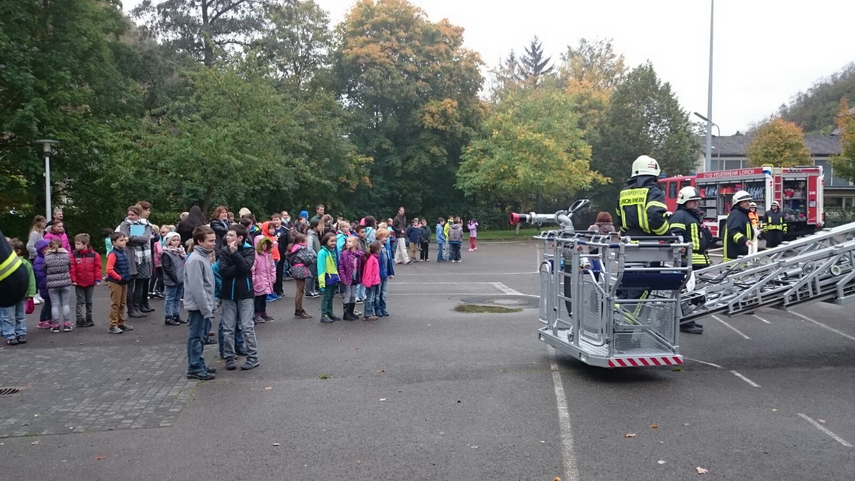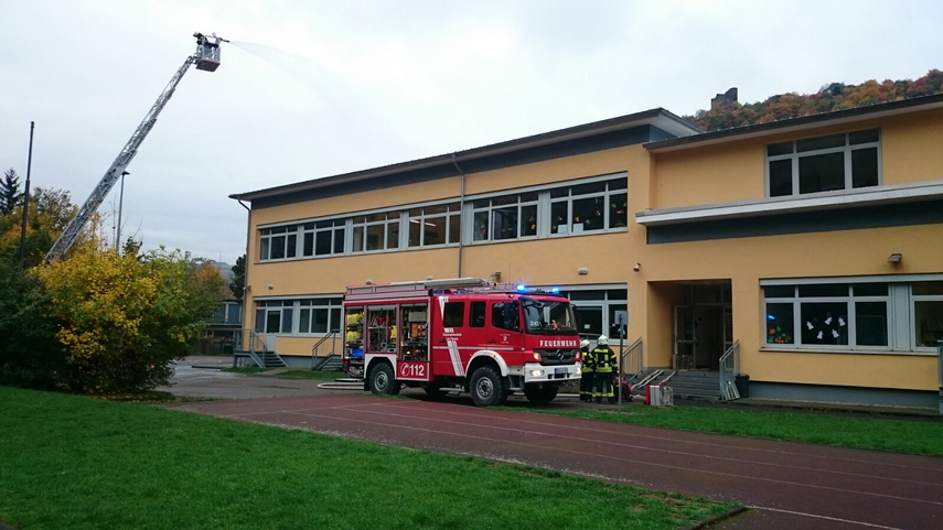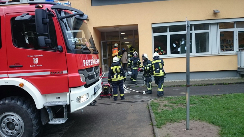 Einsatz der neuen Drehleiter in der Lorcher Grundschule, an der 125