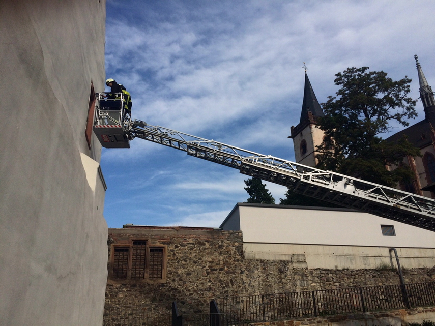 Drehleiter Ausbildung im Stadtgebiet