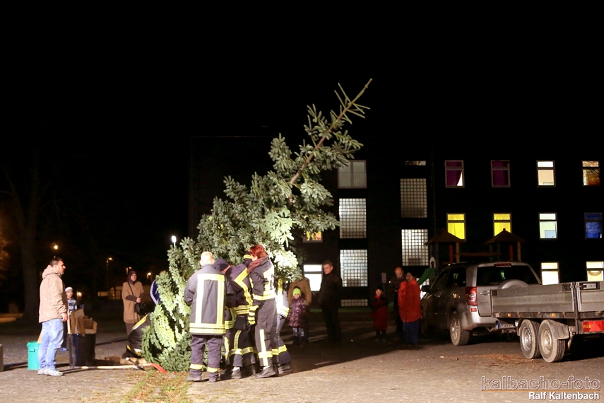 Weihnachtsbaum steht nun mit Lichtern geschmückt und von allen