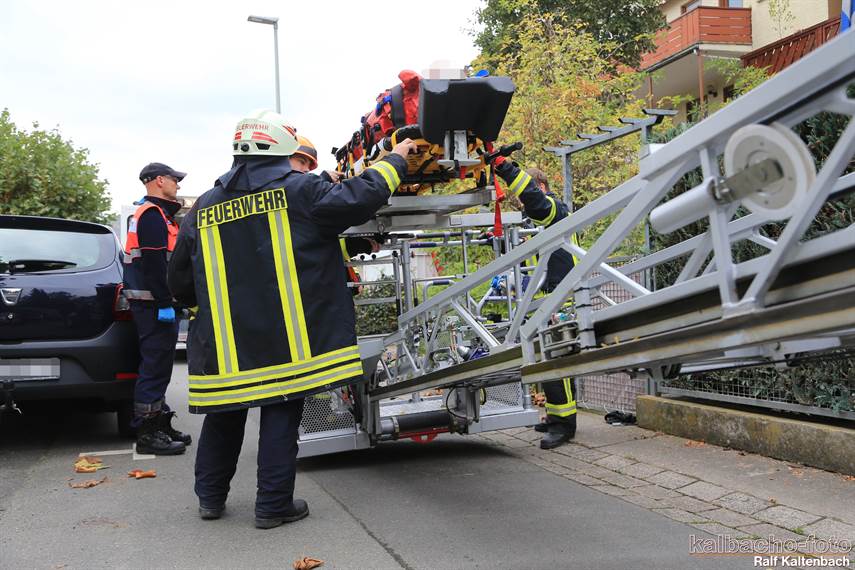die Drehleiter zu retten. Der Patient wurde anschließend an den