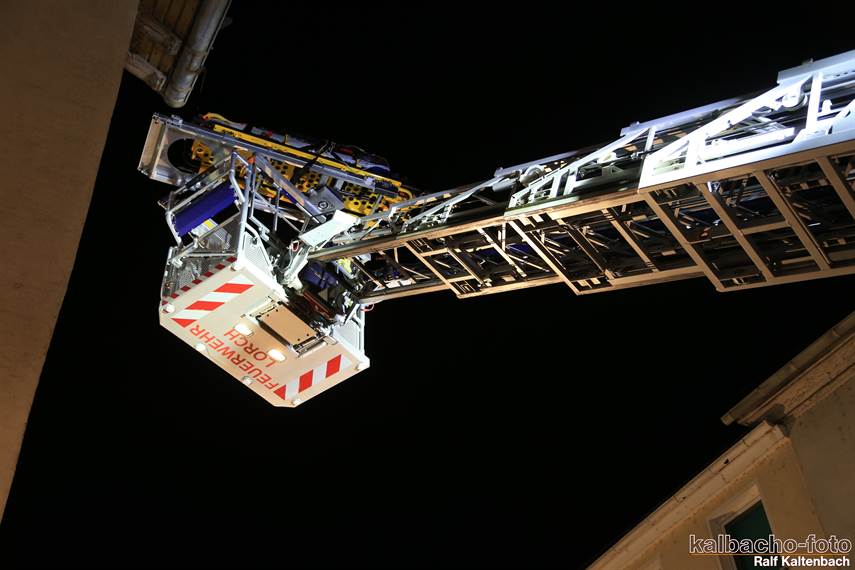 (HZ) Die Feuerwehr Lorch wurde heute Nacht zur Unterstützung der Feuerwehr Kaub bei einer Menschenrettung alarmiert. Ein Patient musste aus dem 2 OG. mit der Drehleiter gerettet werden. Danach wurde der Patient dem Rettungsdienst übergeben.