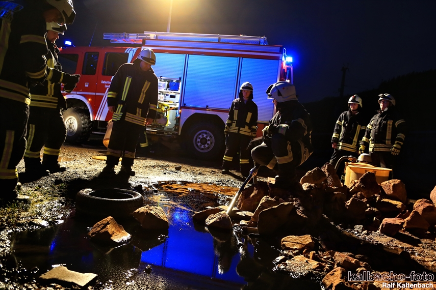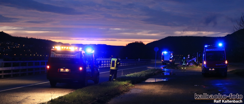 an der B42 alarmiert. Durch den Regen hatte sich eine große Pfütze