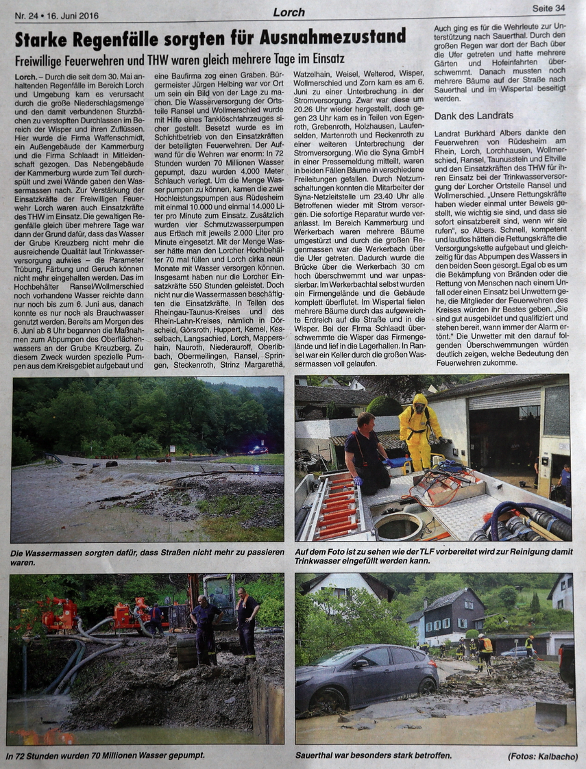 Einsatz bei der Trinkwasserversorgung der beiden Lorcher