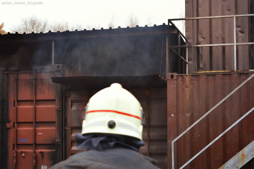 Unter null Sicht und bei ca. 60 Grad ging es in denn Brandcontainer.