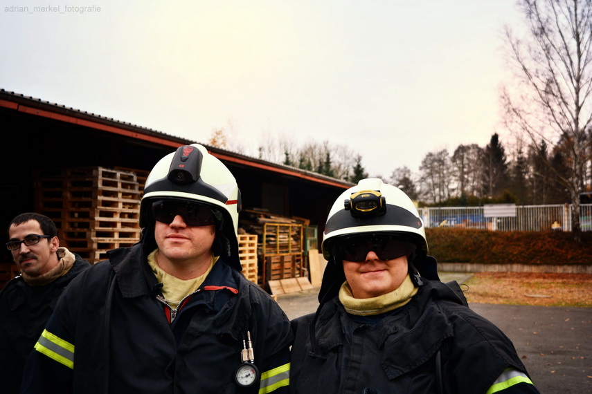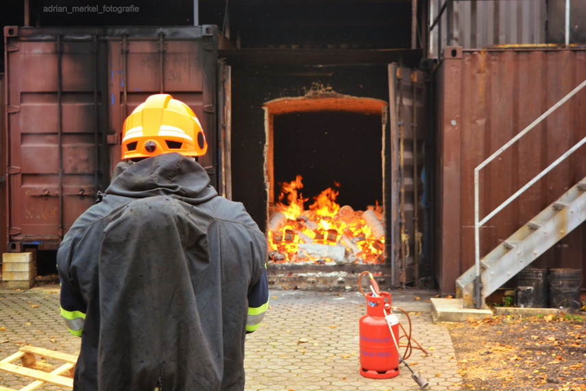 Schwerem Atemschutz in die Brandsimulationsanlage.