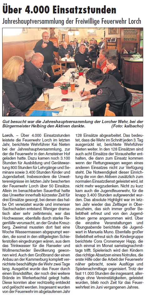 Jahreshaupt- und Mitgliederversammlung der FFw Lorch am 17.03.2017