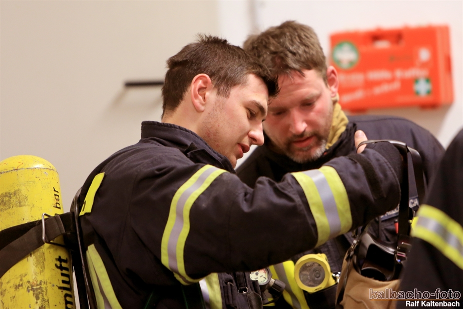 (MP) 4 Kameraden haben heute ihre jährliche Belastungsübung am Standort absolviert. Bestandteil der Übung waren u.a. das Besteigen der 4-teiligen Steckleiter unter Atemschutz sowie ein simulierter Kellerbrand mit Menschenrettung.