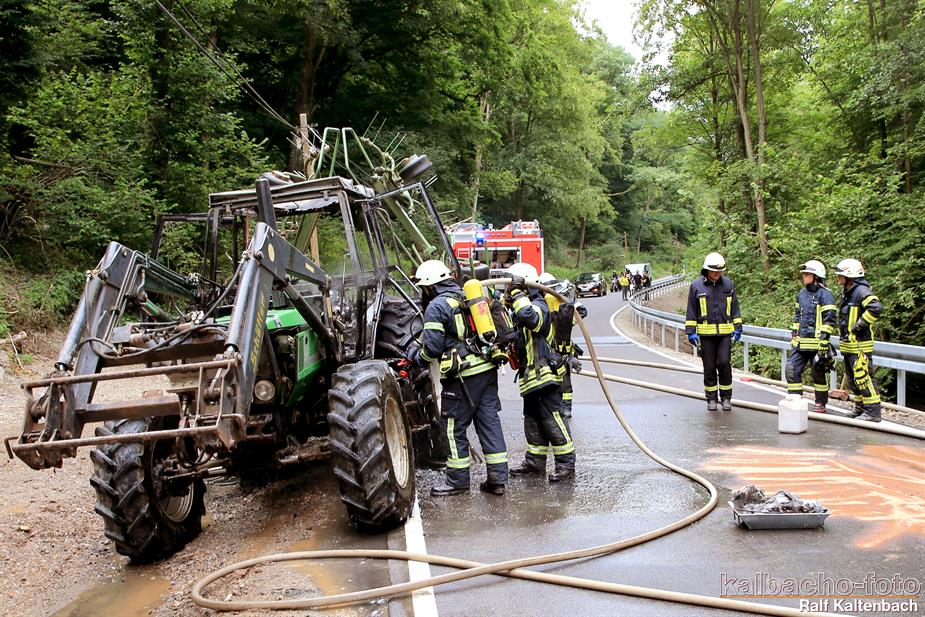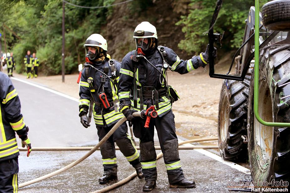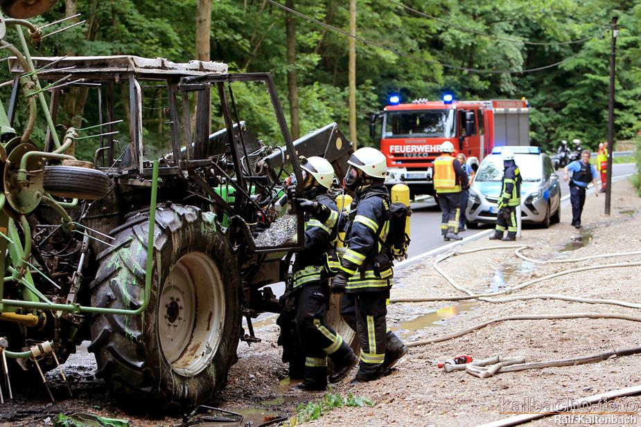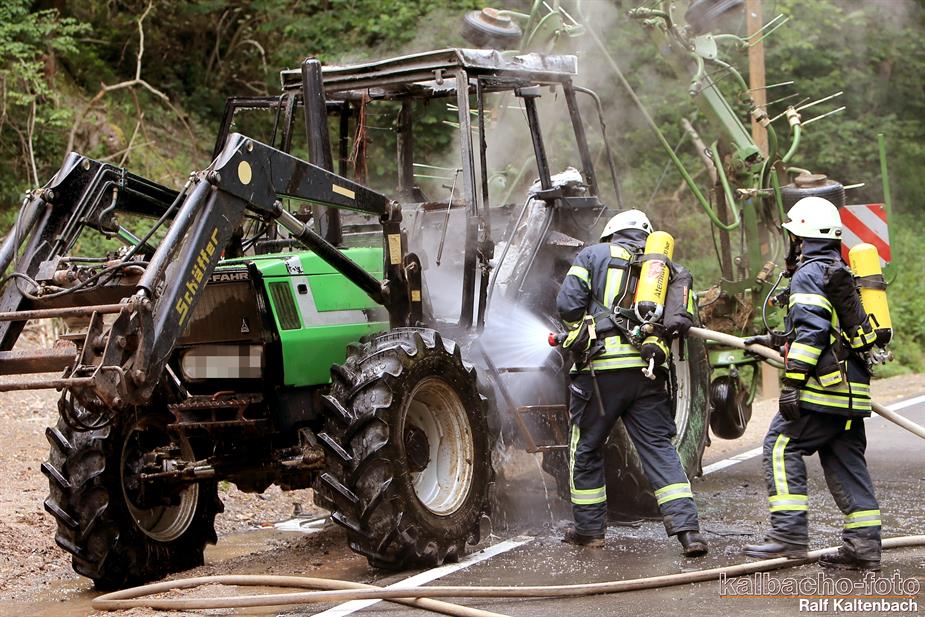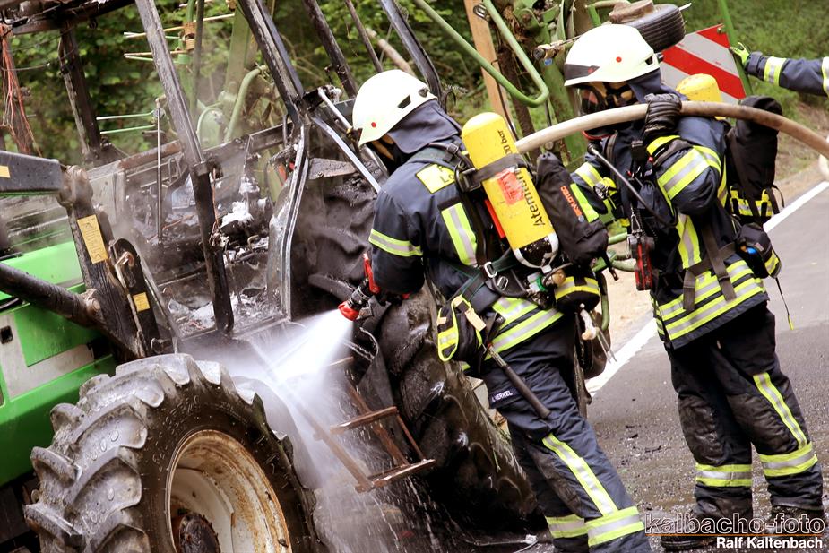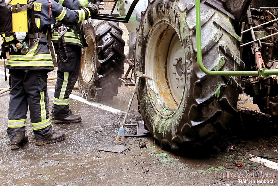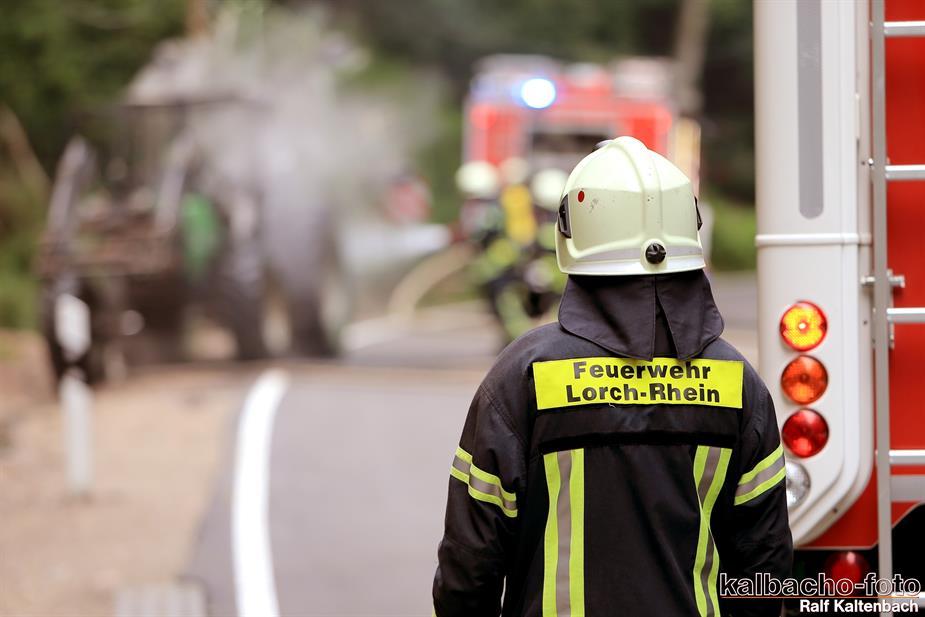 (TL) Die Feuerwehr Lorch wurde zu einem brennenden Traktor auf die Wisperstraße L 3033 alarmiert.