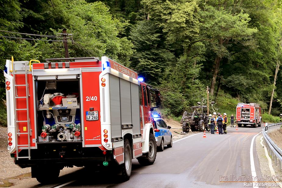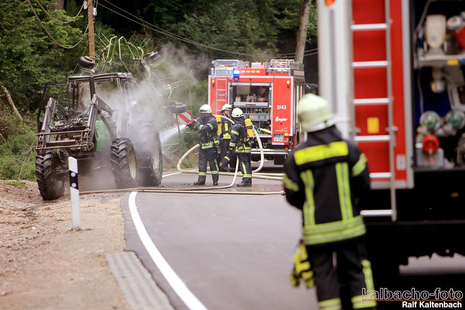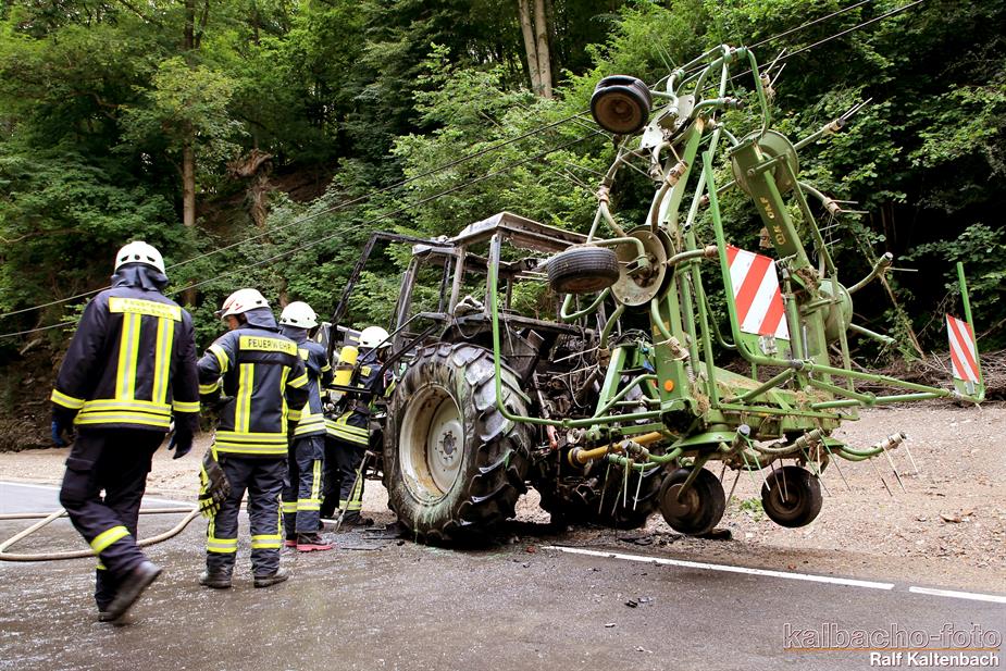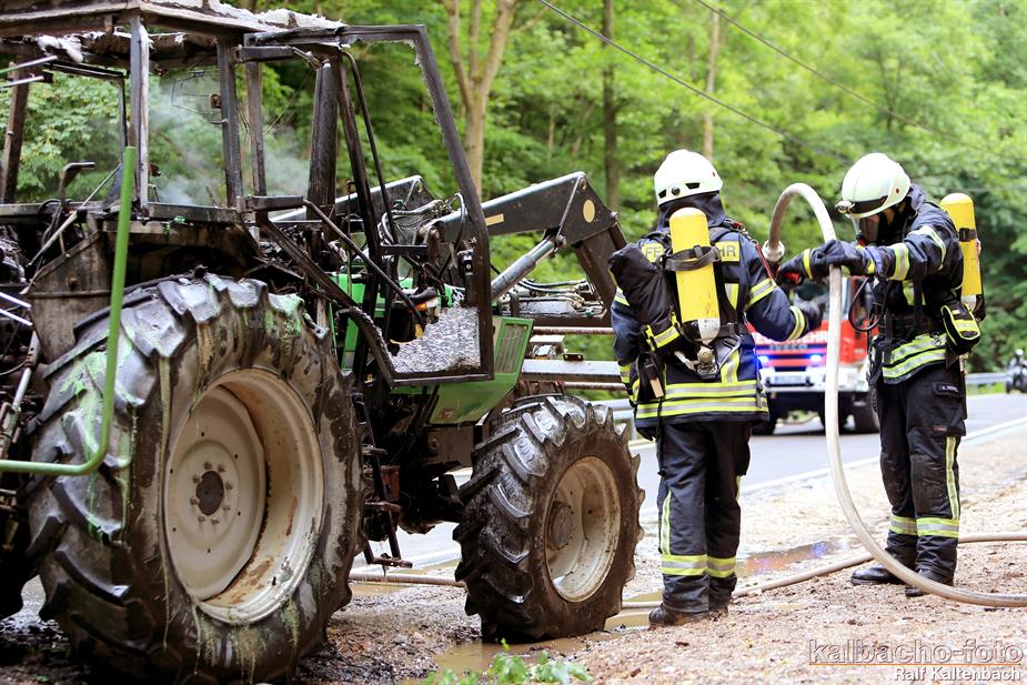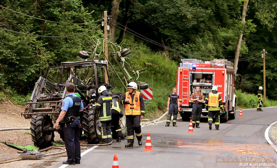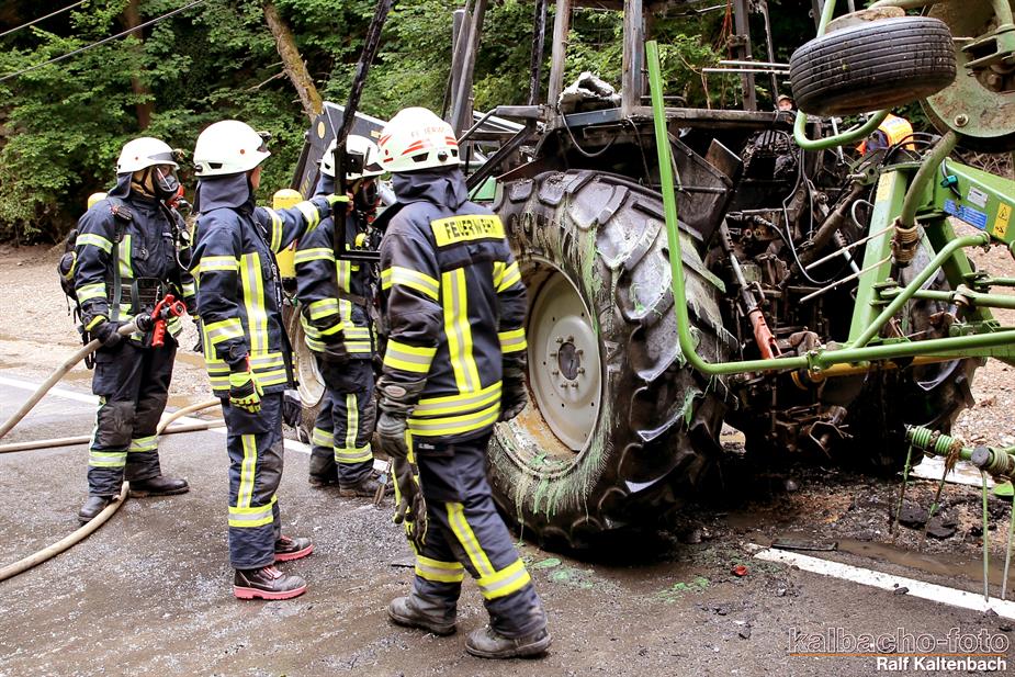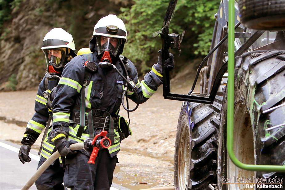 (TL) Die Feuerwehr Lorch wurde zu einem brennenden Traktor auf die Wisperstraße L 3033 alarmiert.