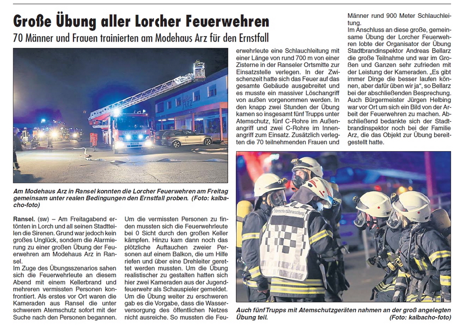 Jahresabschlußübung Einsatzkräfte Stadt Lorch