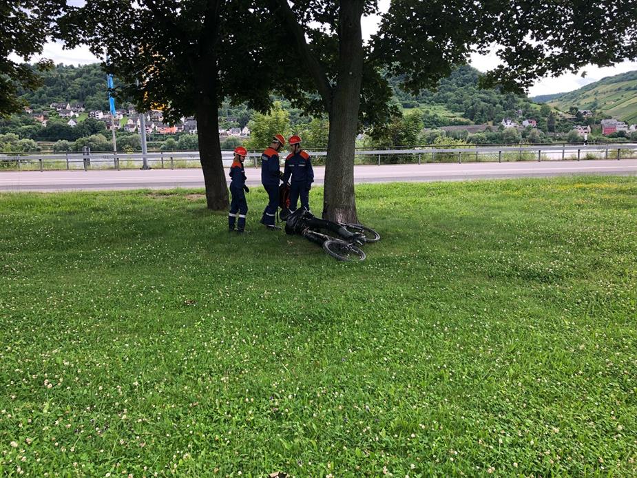 Die andere Gruppe hatte den Auftrag eine mit einem Fahrrad verunfallte Person zu betreuen und zu bergen und dann an den RTW zu übergeben. Außerdem sicherten sie das Fahrzeug ab und bauten einen Lichtmaßt wegen der eintetenden Dunkelheit auf.