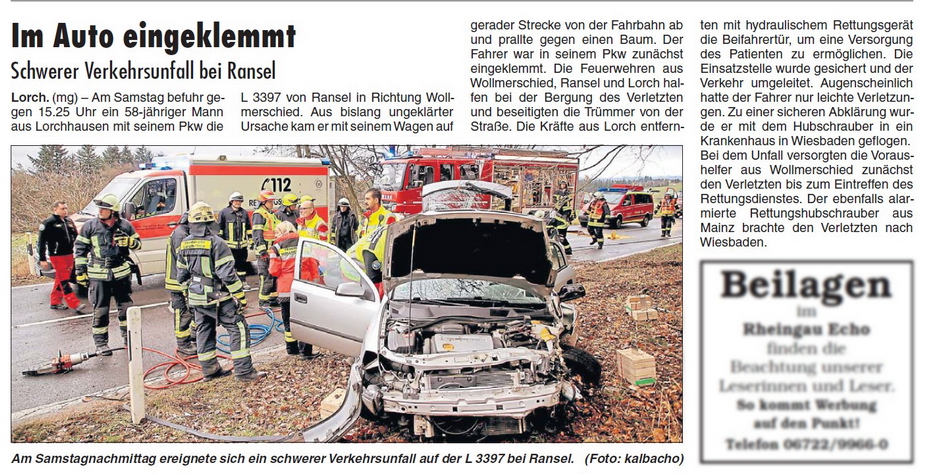 58jähriger Mann aus Lorchhausen mit seinem Pkw die L 3397 von Ransel in