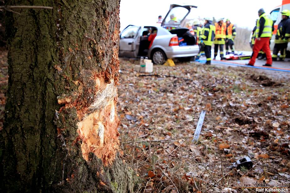 gerader Strecke von der Fahrbahn ab und prallte gegen einen Baum. Der