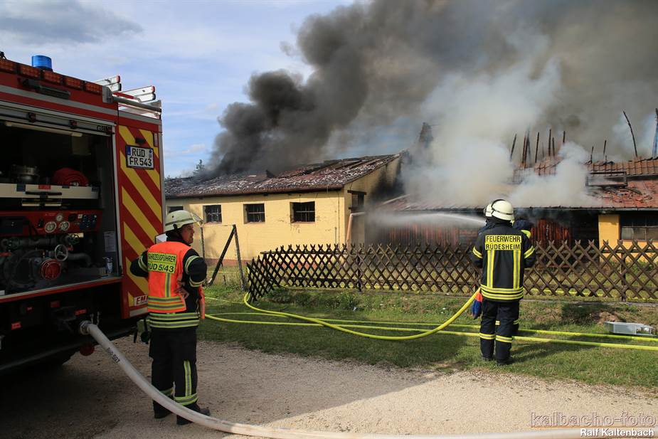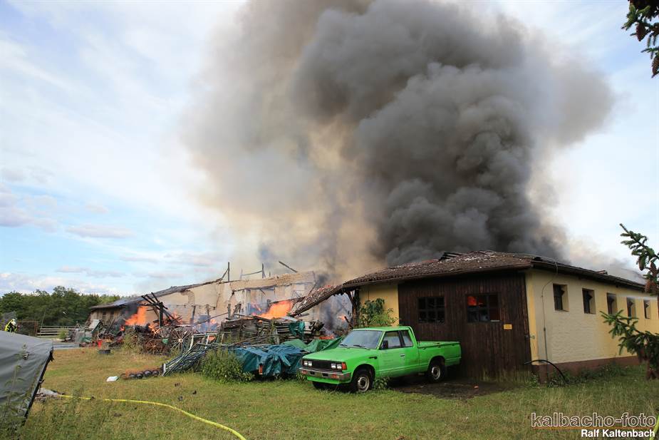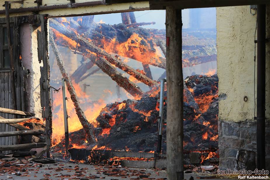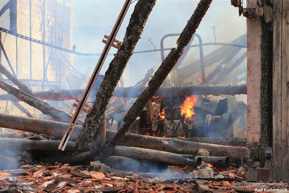 Sonntagabend ein Feuer ausgebrochen. Sowohl die Stallungen als auch