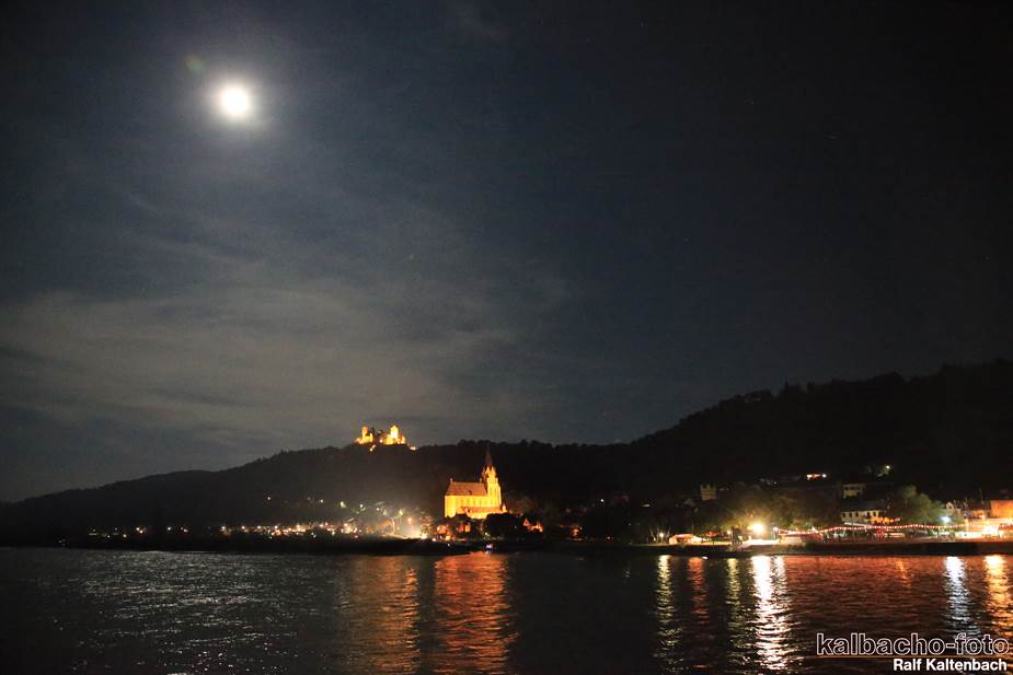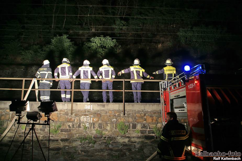 Fw Kaub gerufen. Nach dem Feuerwerk brannte es