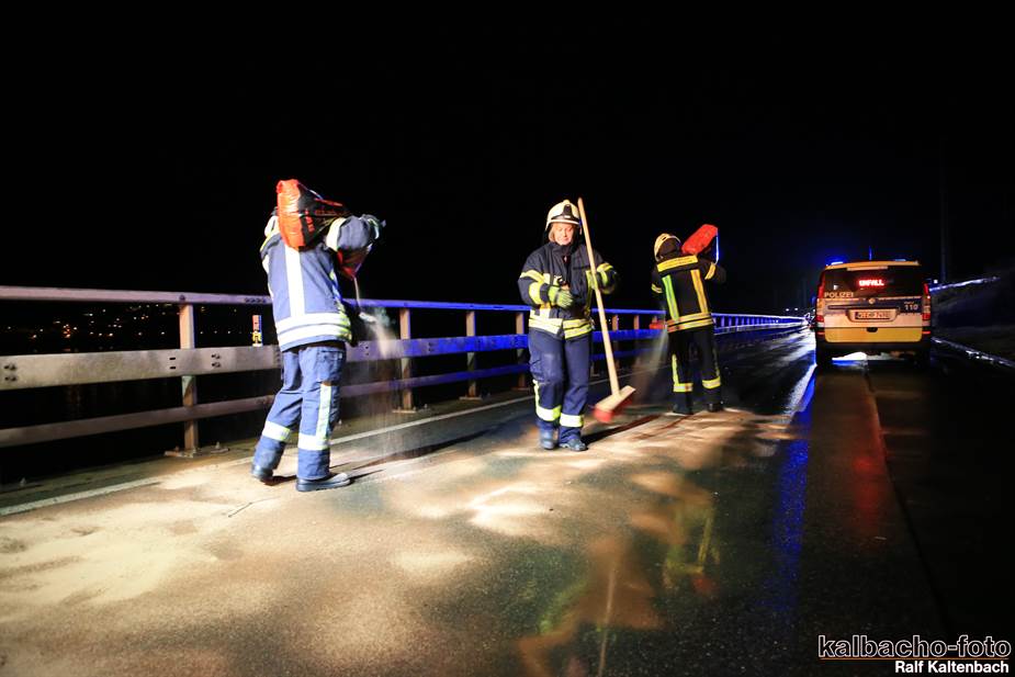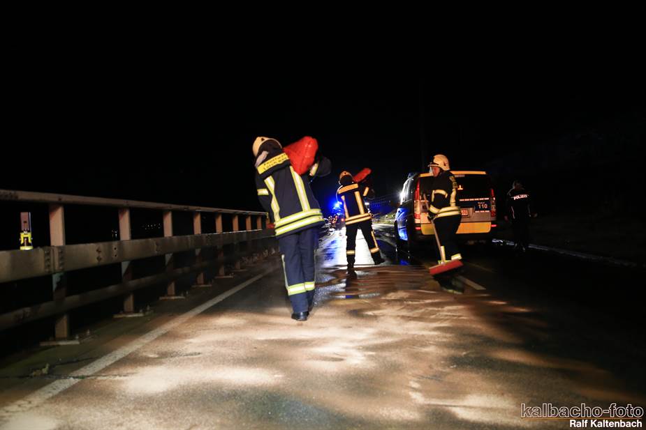 (TL) Die Feuerwehr Lorch wurde auf die B42 Richtung Rüdesheim alarmiert. Hier war ein PKW verunfallt bei dem größere Menge Öl ausgetreten waren.