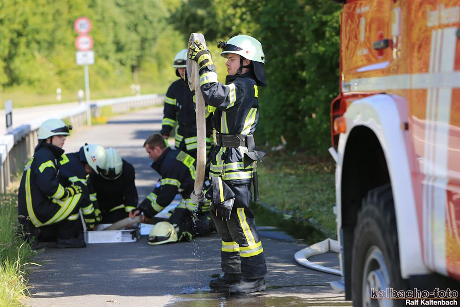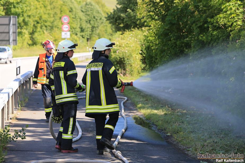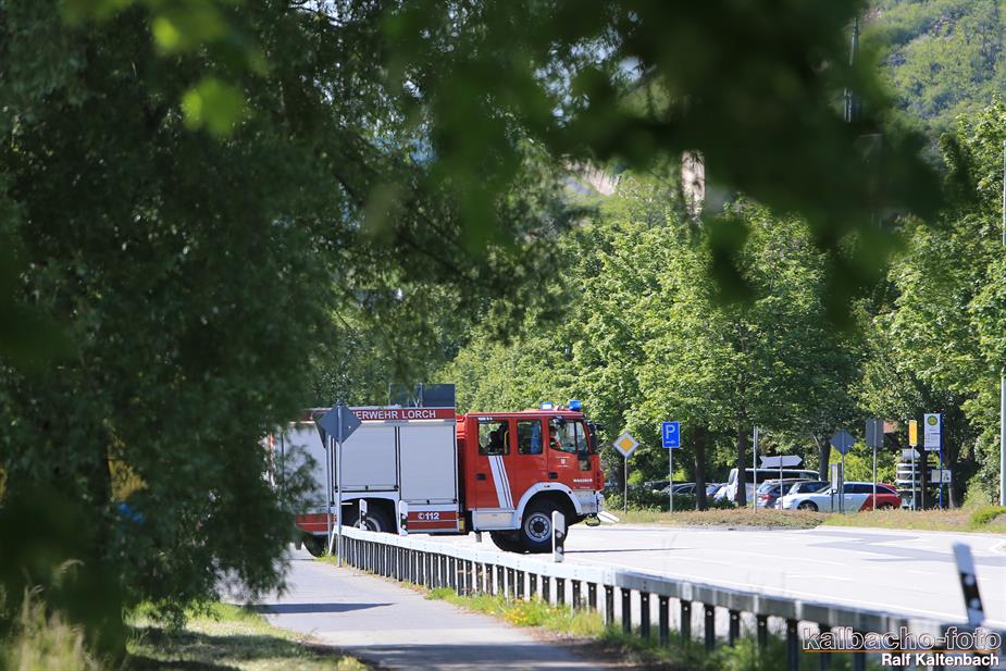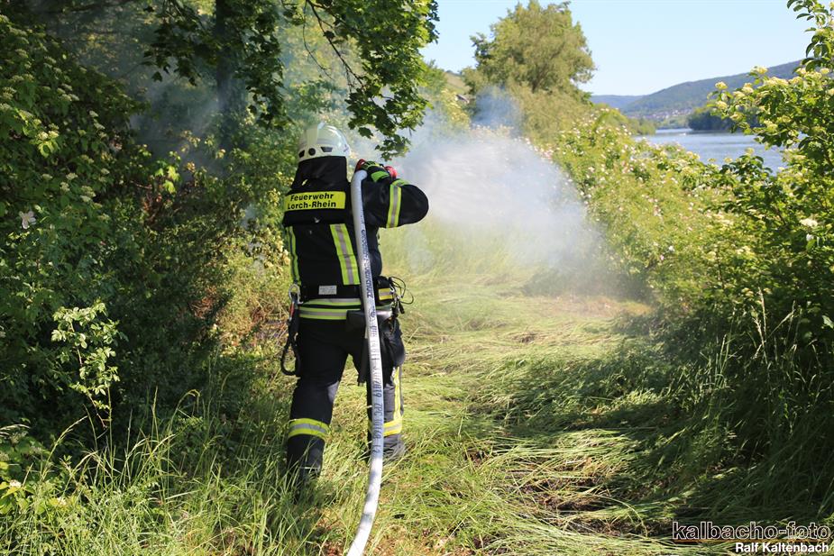 (TL) Die Einsatzkräfte waren noch im Gerätehaus als bereits der nächste Alarm einging. Die Wehr Lorch wurde zu einem Flächenbrand Höhe Autofähre an der B42 gerufen. Mit 2 C Rohren wurde das Feuer gelöscht