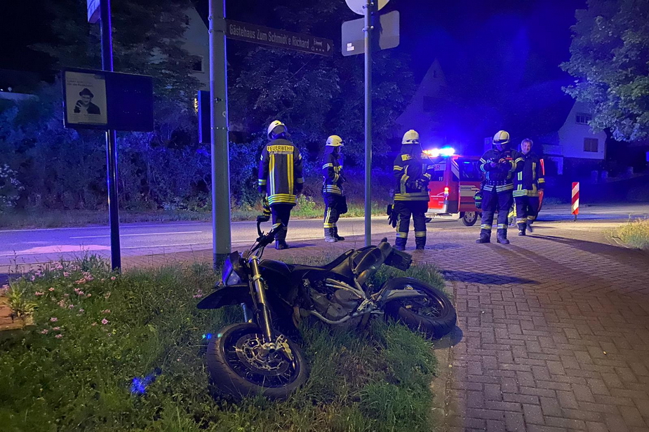(TL) Die Feuerwehr Lorch wurde alarmiert um einen kleinen Ölfleck abzustreuen. Dieser war Folge von einem Verkehrsunfall mit einem Motorrad.