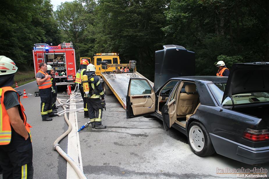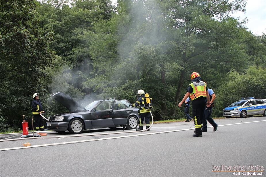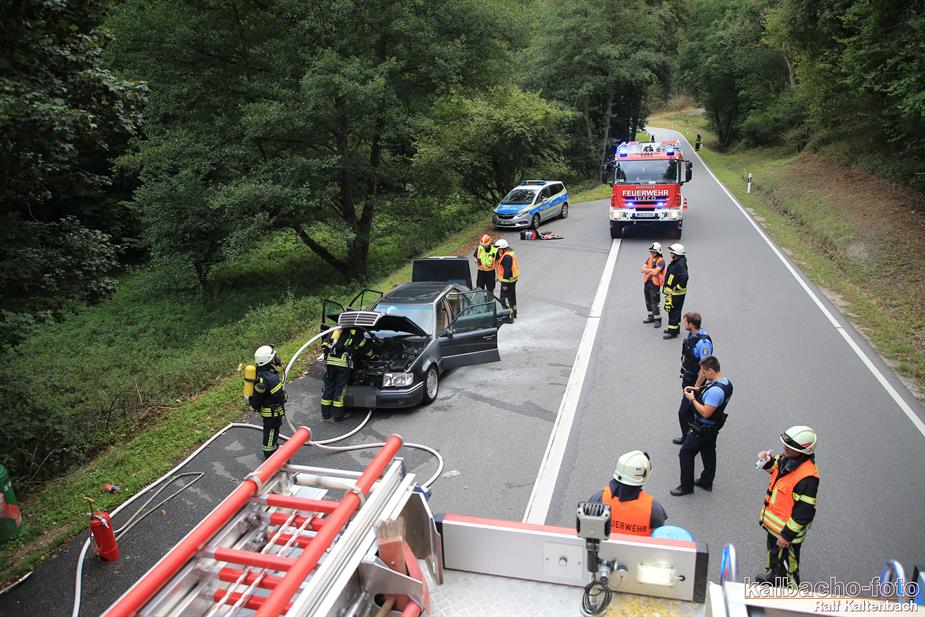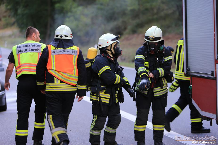 (TL) Die Feuerwehr Lorch wurde zu einem Pkw Brand ins Wispertal gerufen. Das Feuer wurde mit einem C Rohr gelöscht.