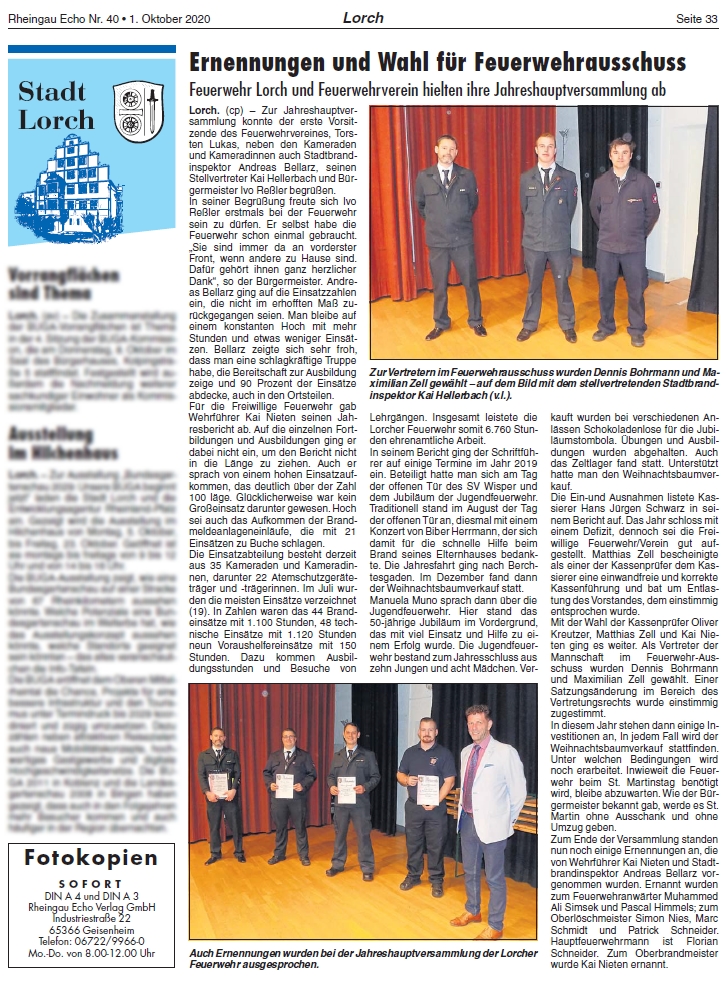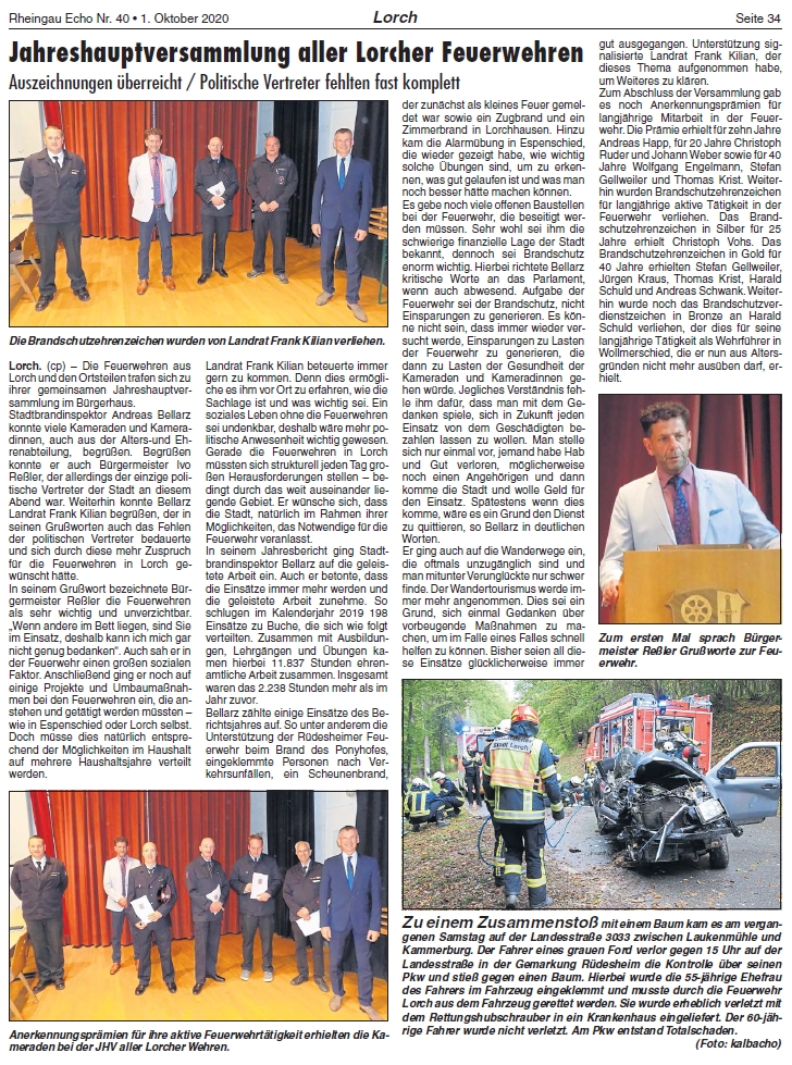 (TL) Am 25.09.2020 fand unsere Jahreshaupt- und Mitgliederversammlung im Bürgerhaus Lorch statt. Alles weitere dazu im nächsten Rheingau Echo - Ausgabe: 01.10.2020, und dann auch hier online!