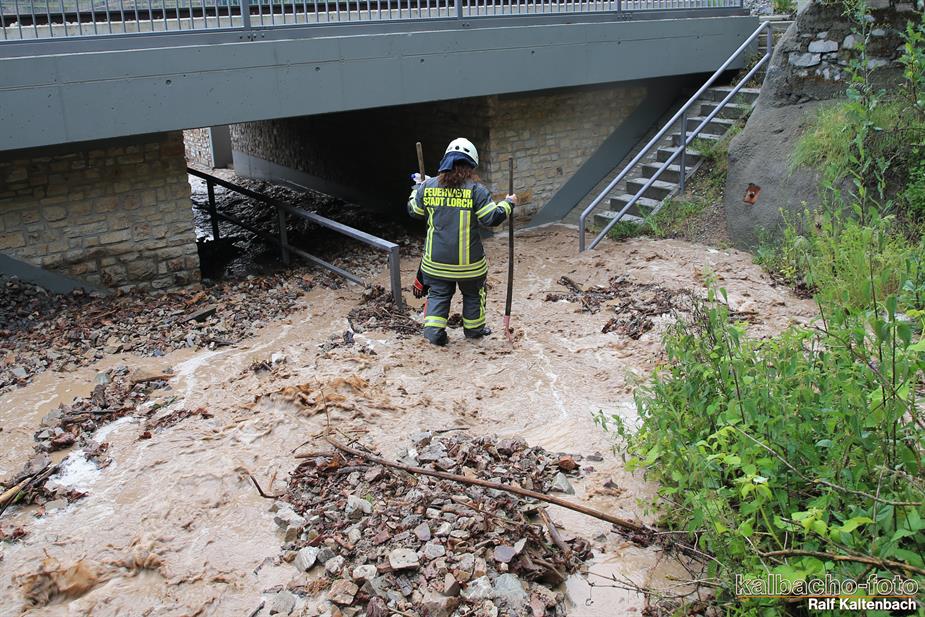 zum Unwetterschaden gerufen. Durch Starkregen wurde Geröll