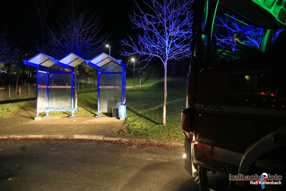 einer brennenden Bushaltestelle gerufen.