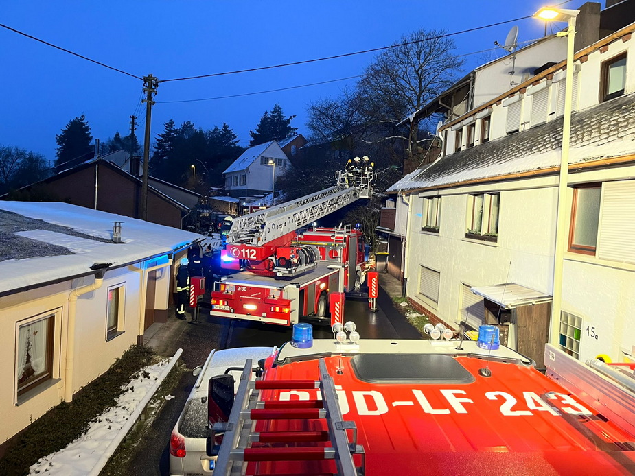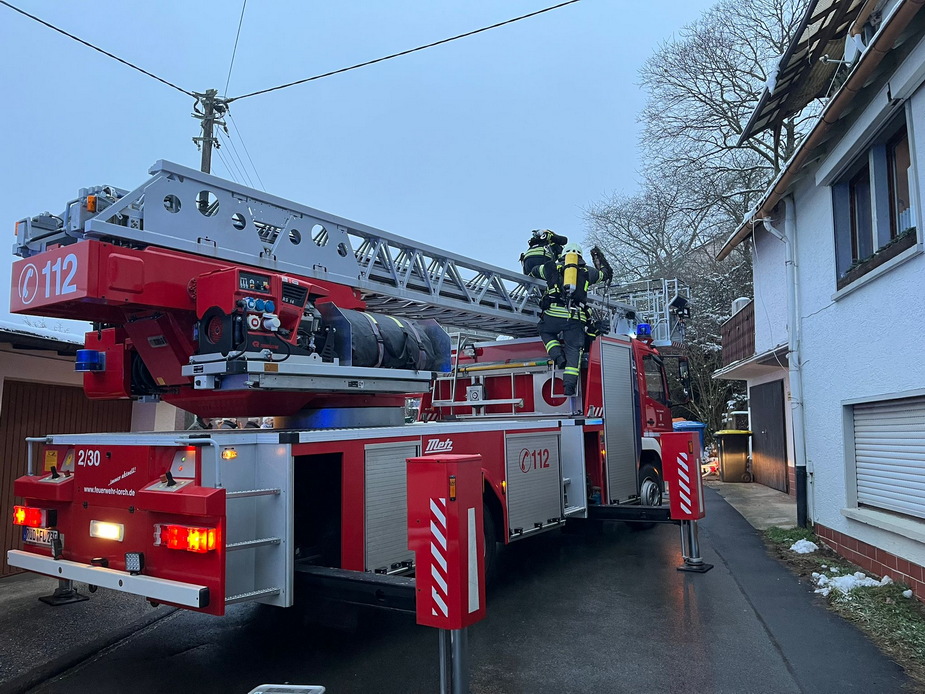 Über die Drehleiter und Löscharbeiten im Gelände wurden insgesamt 6