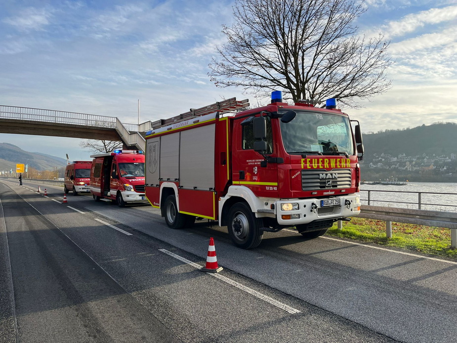 der rheinland-pfälzischen Seite ebenfalls die Feuerwehren alarmiert.