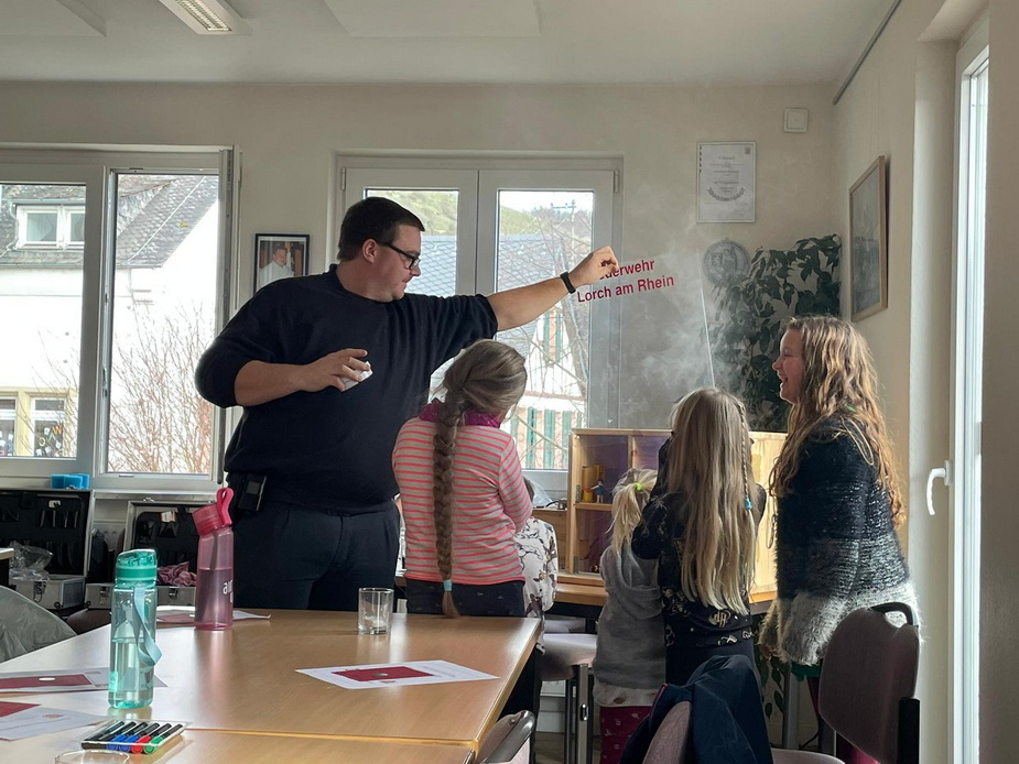 interessierte Kinder, die Lorcher Kinderfeuerwehr im