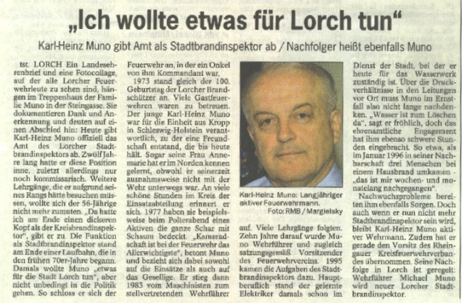 des Stadtbrandinspektors Karl - Heinz Muno und Ernennung des neuen
