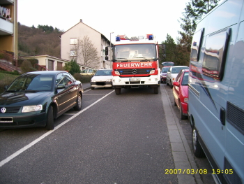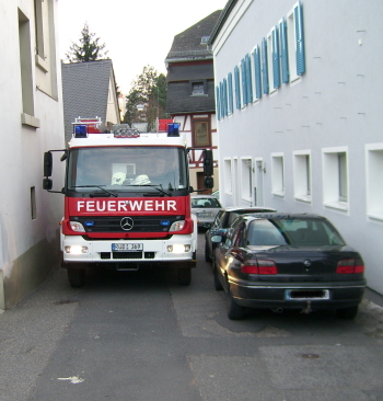Feuerwehrfahrzeuges durch parkende Fahrzeuge oftmals behindert wird und