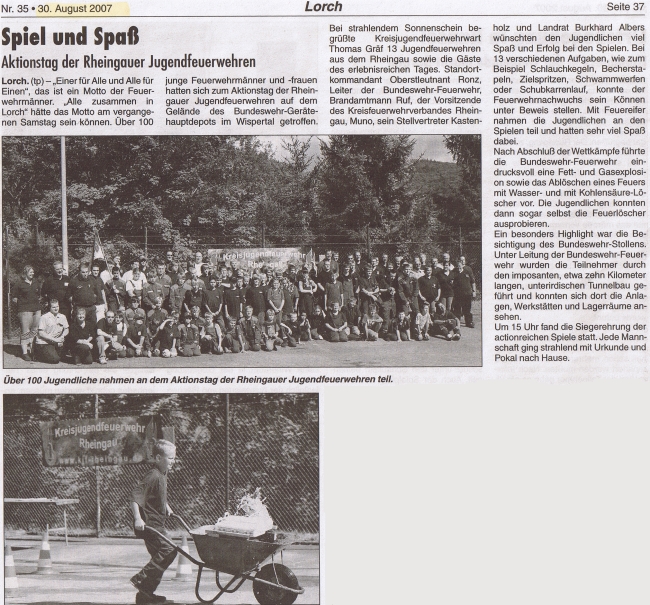 25.08.2007 fand der Aktionstag der Rheingauer Jugendfeuerwehren