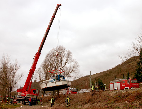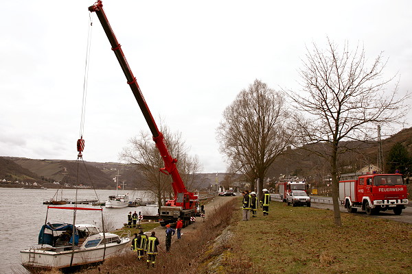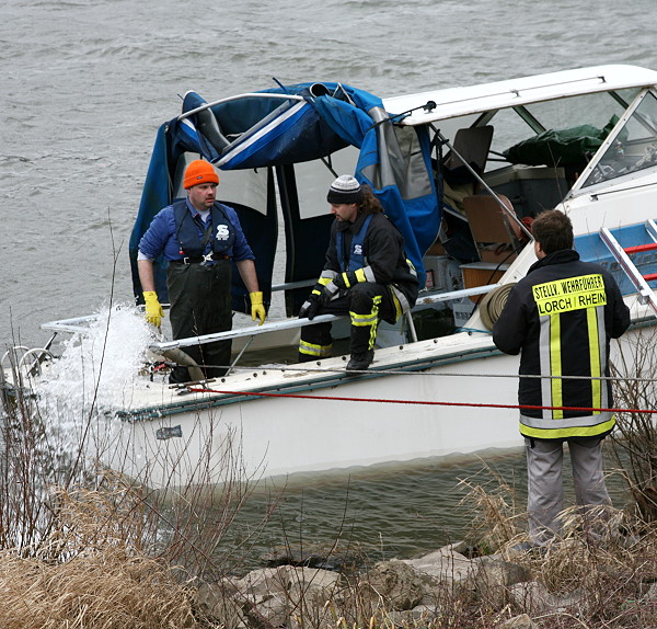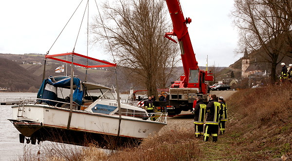 durch eine Spezialfirma geborgen. Die Feuerwehr Lorch wurde erneut durch die Wasserschutzpolizei Rüdesheim angefordert um das Boot auszupumpen und die Bergung zu unterstützen.